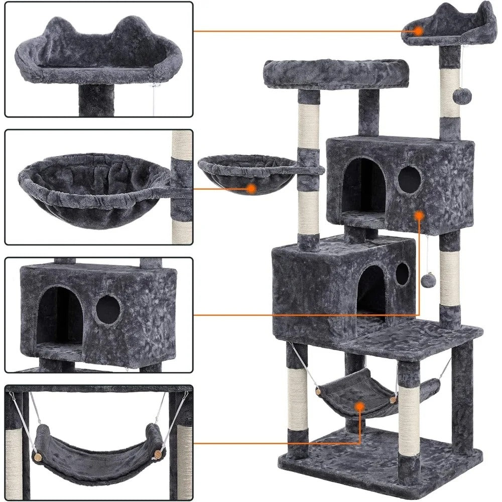 137cm Cat Tree Tower with 2 Condos, 3 Scratching Posts & 2 Dangling Balls – Large Easy-to-Clean Cat House for Kittens & Cats