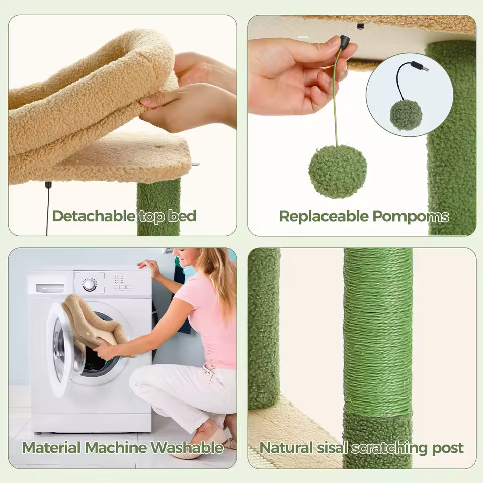 Pet-Friendly Materials: The cat tree is covered with ultra-soft carpeting, providing cats with a cozy sleeping environment. The natural sisal is durable enough to perfectly fulfill the scratching needs.
