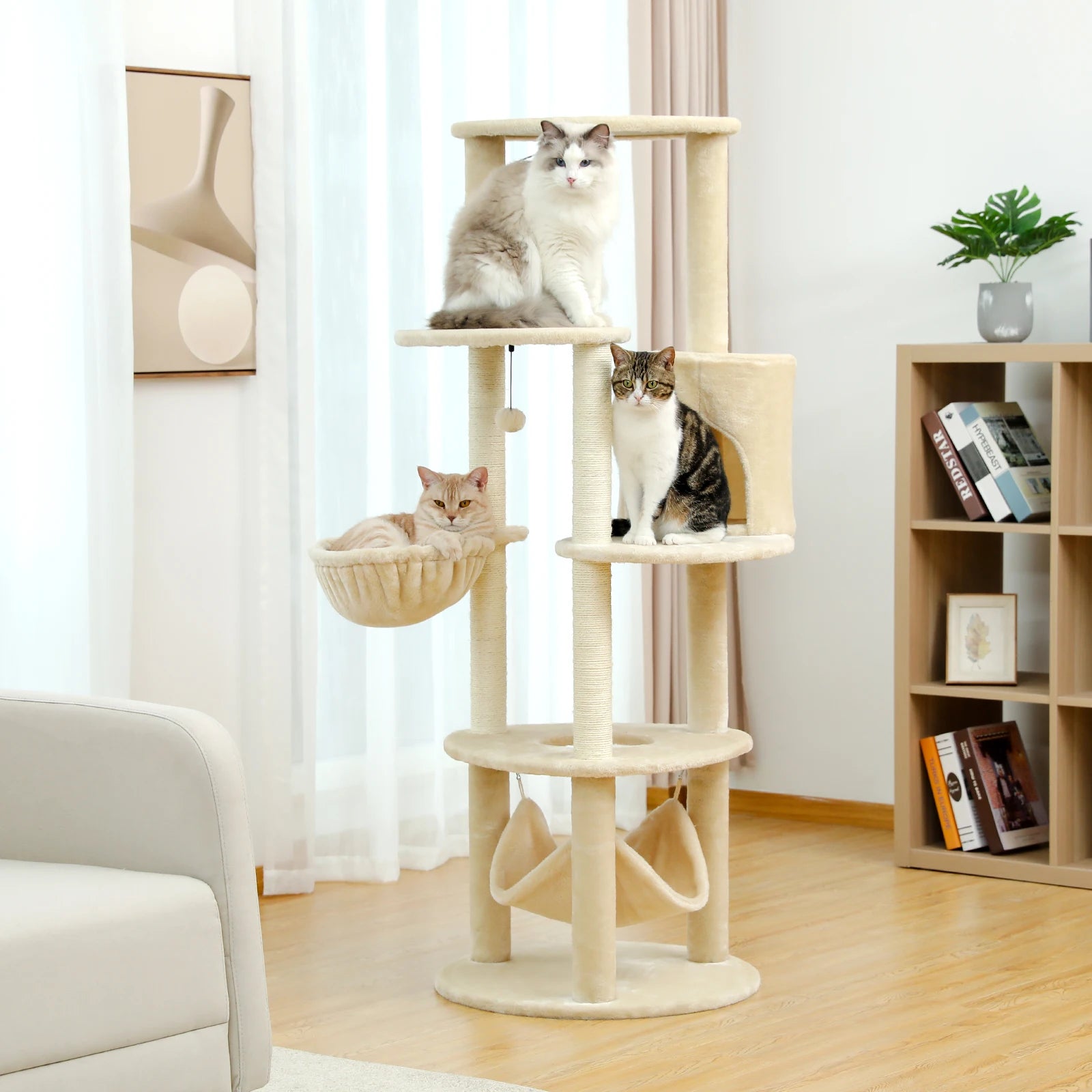 Perfect for Multi-Cat Households: This grand 152cm cat tree is a magnificent castle for families with multiple cats. It comfortably accommodates 2-3 cats simultaneously, providing ample space for all.