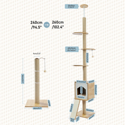 Adjustable 240-260cm Cat Tree - 'Cat Town' High-Rise Tower